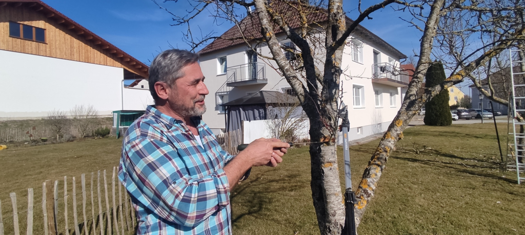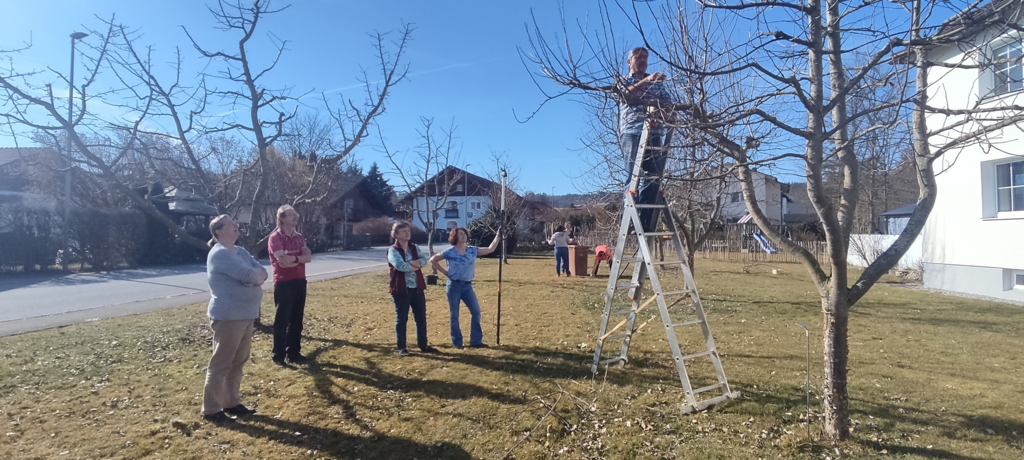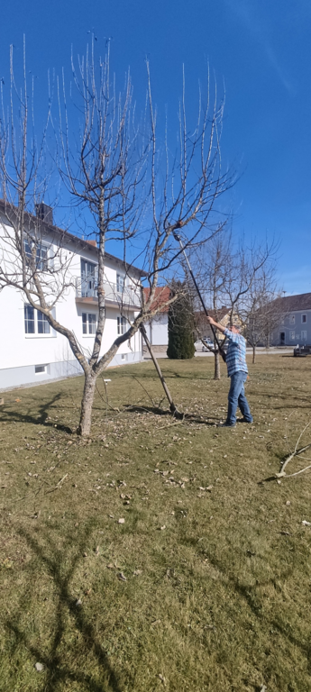 Die erste Aktion der Reuterner Gartler ist wie immer der Rückschnitt der Obstbäume im Pfarrgarten.