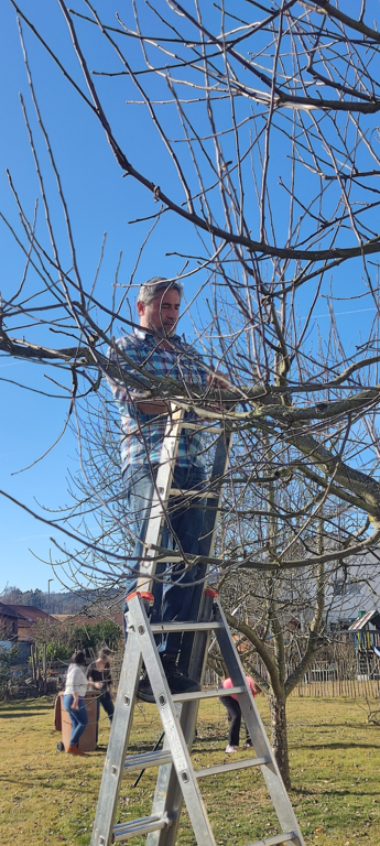 Baumschneiden im Pfarrgarten
