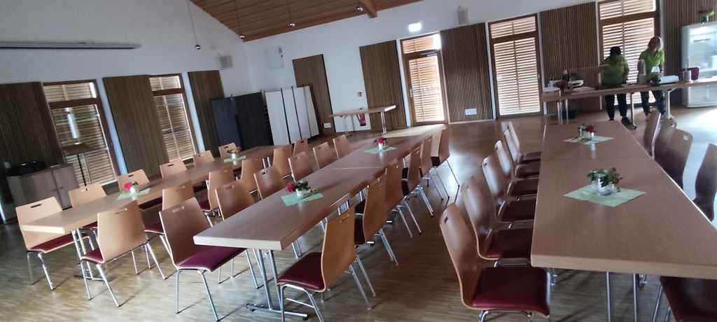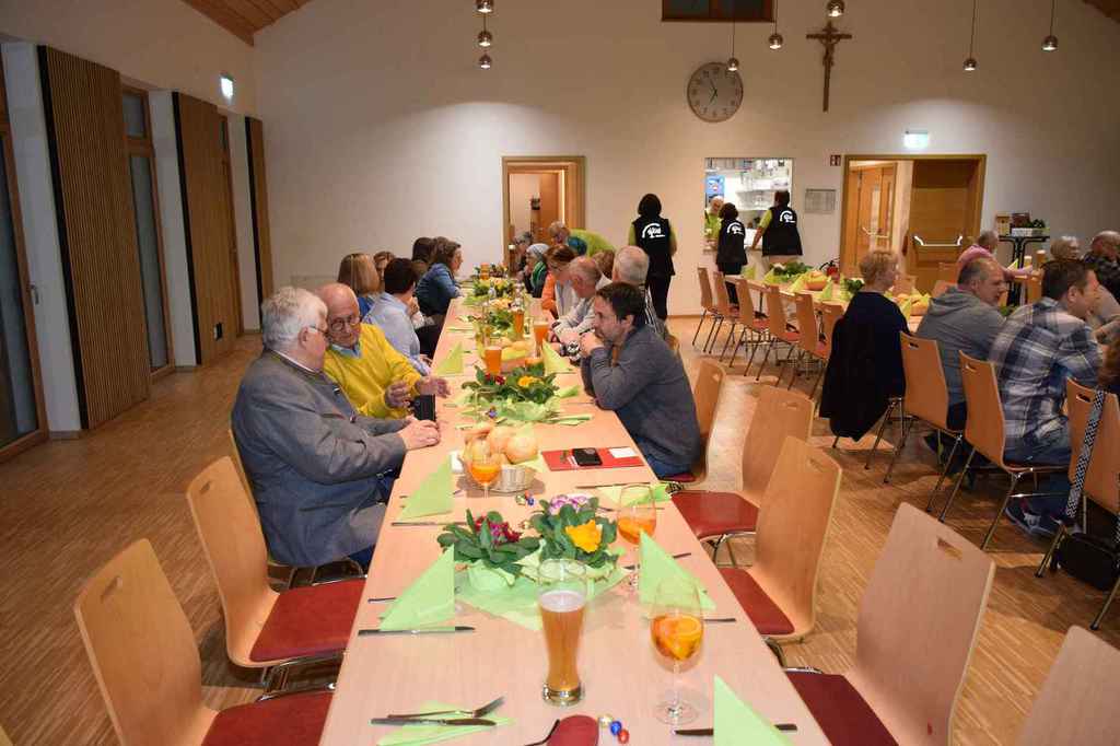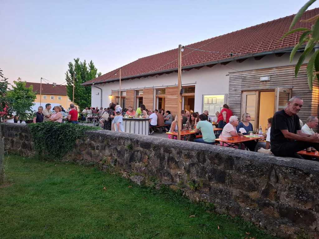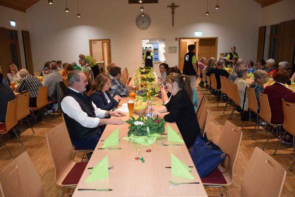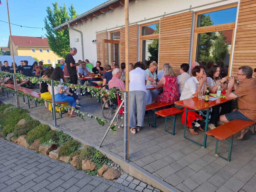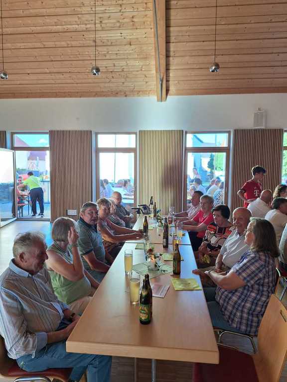 Gästen nutzten die Indoorplätze im DGH um sich bei ausgelassener Stimmung von den angebotenen Schmankerln verwöhnen