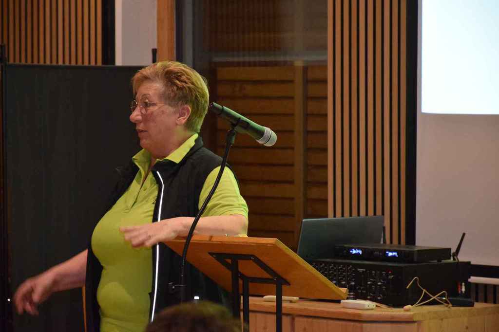 Die erste Vorsitzende Marianne Geist blickt hoch erfreut in einen sehr gut gefüllten DGH Raum und eröffnete die Versammlung