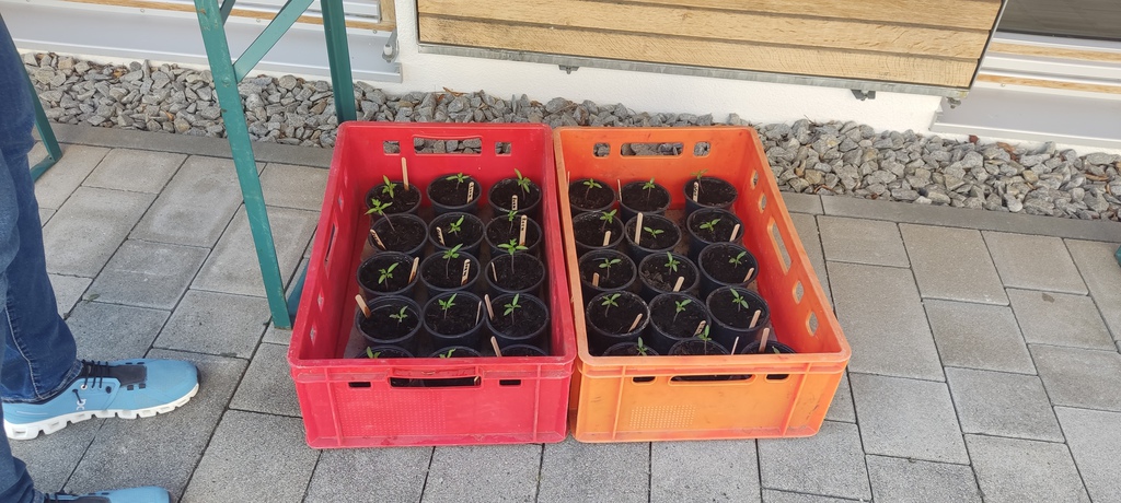 und Tomaten-Pflänzchen, Iris, Schwertlilien, diverse Kräuter, Storchschnabel, Wiesen Iris, Salomonsiegel (Vorsicht giftig),