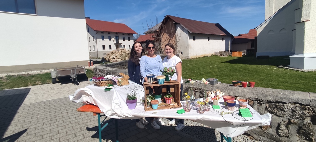 Petzi die Besucher, und wies auf den Bastelstand der Gartenzwergerl Damen hin. Passend zu Ostern wurden