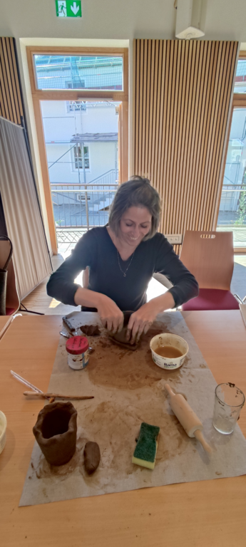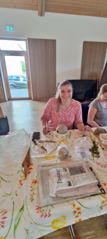 diese unter Anleitung der Hobby Töpferexpertin in die Tat um. Die Expertin war bestens ausgestattet mit vielen