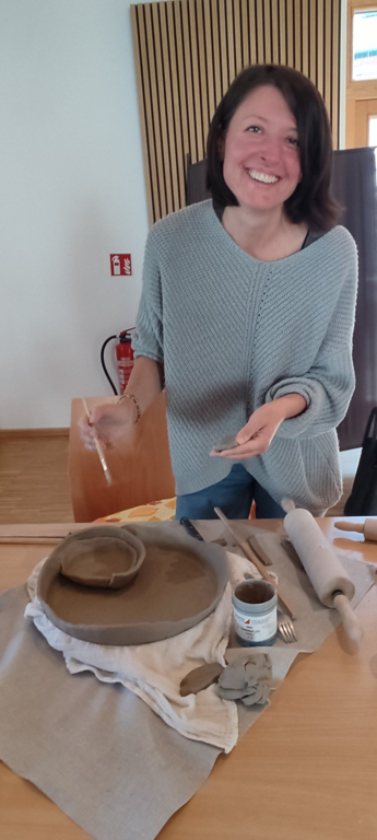 nach der Trocknungsphase von der Töpferexpertin im Atelier in Triftern durchgeführt. Die gestalteten Unikate