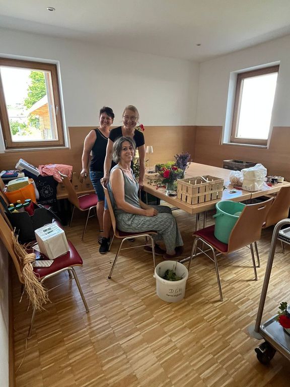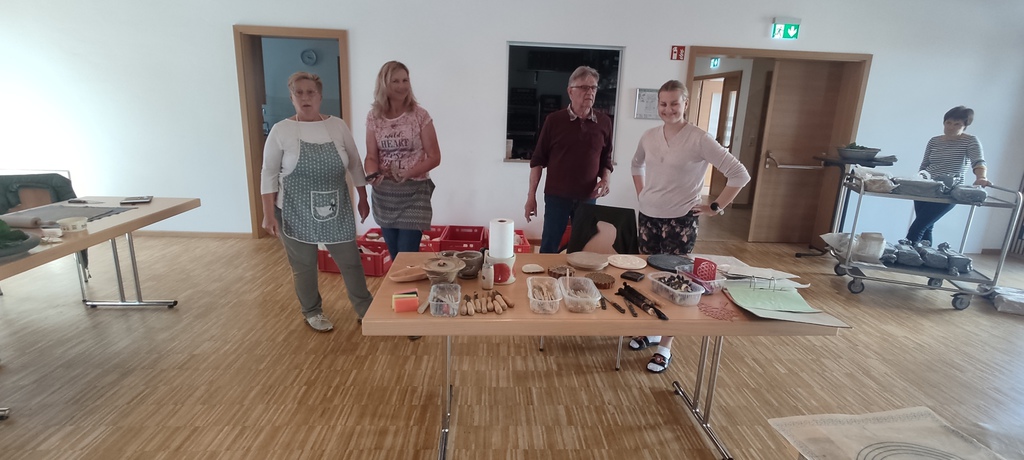 Resi Vogl mit ihrem 3 köpfigen Helferteam aus Triftern erarbeiteten die Teilnehmer kreative Motive und setzten