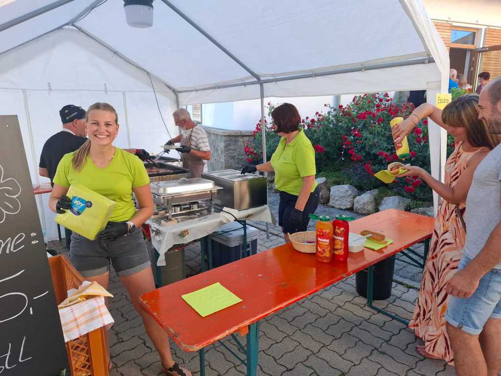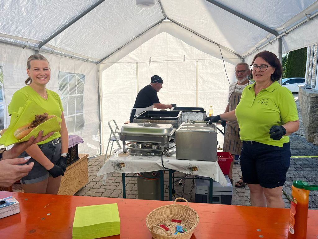 Am Grill standen der 1 Vorsitzende Wolfgang Petzi, Herbert Köckerandl mit der Verkaufsunterstützung Anita Neubauer, Claudia