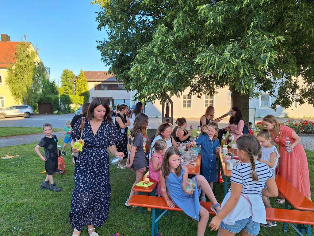eifrig ans Werk und sorgten mit vielen lustigen Spielen für eine tolle Unterhaltung bei schönstem Wetter und einer warmen Sommernacht.Gegen 21:15 Uhr wurde ein kleines Feuer in einer Grillschale zur Freude vieler entfacht. Gegen Mitternacht lichteten sich die Plätze und die Vorstandschaft konnte sich endlich für ein Resümee bei einem Absacker treffen.