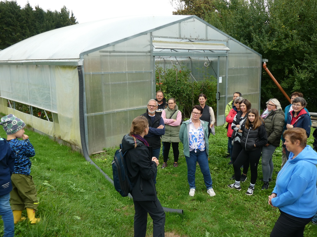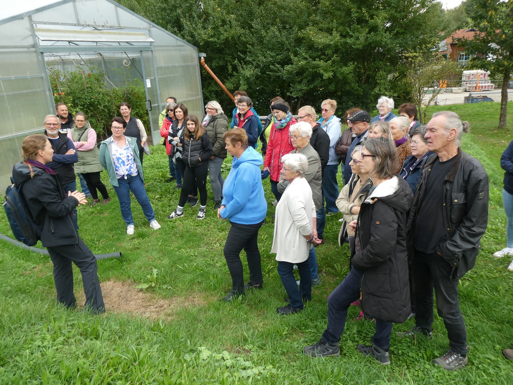 Der Gartenbauverein Reutern e.V. besuchte die Stiftungseinrichtung Confido in der Würm 1. Gut 40 Interessierte Mitglieder hatten sich im Vorfeld bei der Organisatorin Anita Neubauer angemeldet. Der Bekanntheitsgrad der Einrichtung ist sehr groß. Idyllisch liegt die Einrichtung in mitten der hügeligenLandschaft in einer Sackgasse am Staatsforst neben den bekannten Scherengräben. Begrüßt wurde die Runde von der Gärtnerin Renate Wimmer, vom Leiter der Landwirtschaft Andreas Steinhuber, von Landwirtschaftsmeisterin Martina Gebhart und vom Koch, Christian Sonnleitner. Martina erklärte dem Besucherteam die Kernaufgaben der Confidostiftung und den beeindruckenden Ideenumfang des Gründers Dr. Peter Schopf. Vision: Ziel ist, heilende Bedingungen zu schaffen, in denen ein Ausheilen von Traumen möglich ist. Zu diesen heilenden Kräften gehören die Natur, Tiere, Leben auf dem Land, ein sicheres Zuhause, aber vor allem Menschen, denen man wieder vertrauen kann. Trotz des sehr großen Bekanntheitsgrades der Einrichtung waren die Besucher erstaunt über die vielfältigen Arbeitsaufgaben und den lokalen Produkten, die in der Würm entstehen und erworben werden können. Die erste Besichtigungsstation war die Obstverwertung. Ausgestattet mit unter anderem mit einer Obstmühle, Hydropresse und Dörrautomaten entstehen viele Produkte. Das Kredo vom Koch Christian ist: Alles was mir an Obst und Gemüse auf den Tisch kommt, wird zu weiteren Produkten veredelt. Davon konnten sich alle, anhand der prall gefüllten Vorratskammer, beeindruckend überzeugen lassen. Weiter ging es über die Küche, die alle Confido Einrichtungshäuser in Adlmörting mit Essen versorgt, zur Essigabteilung. Gut 10 Essigsorten werden aus den Ernten der eigenbewirtschaften Flächen hergestellt. In den hauseigenen Gewächshäusern werden z.B. Tomaten, Paprika, Chili, Gurken unter ökologischen Gesichtspunkten vom Samen bis zur Ernte betreut. In den angrenzenden Hängen stehen tausende Sträucher und Bäume mit einer Sortenvielfalt, wie man sie nur in einer gut sortierten Gärtnerei finden kann. Die Rückfrage an Martina, wann mach ihr das alles, war nicht verwunderlich. Weiß doch jeder Kleingartenbesitzer um die viele Arbeit im Gemüse und Obstanbau. Es wäre natürlich schön, wenn sich ehrenamtliche Helfer finden würden, um diese Lücke schließen zu können, erwiderte Martina. Anschließend gab es selbstgemachtem Apfel und Birnenkuchen mit Kaffee und rege Unterhaltungen. Jeder Besucher bekam eine Präsenttüte mit veredelten und geernteten Produkten. Abschließend bedankt sich der 1. Vorsitzende Wolfgang Petzi bei Martina und Andreas mit einem Präsentkorb und lobte das Team für die gelebte Vision, die jeder spüren konnte. Eine wirklich tolle Truppe ist da am Arbeiten. Auf gut bayrisch würde man sagen: lauta möga di. Unterstützen kann man die Einrichtung durch Spenden an IBAN: DE26 7406 2490 0006 4341 50, Kauf ihrer frischen und veredelten Produkte online unter www.con-oeko.de oder in den heimischen Verkaufsständen auf dem Kößlarner Bauernmarkt, in Kleeberg und Tettenweis und selbstverständlich mit Ihrer ehrenamtlichen Mithilfe im pädagogischen und nichtpädagogischen Bereich.