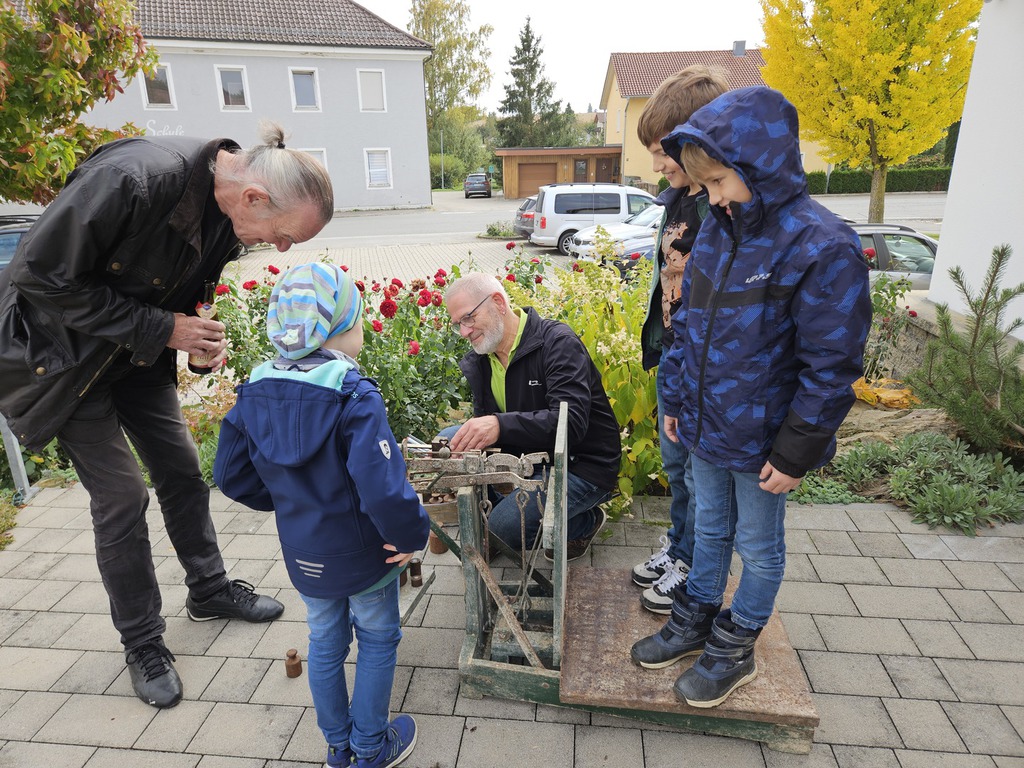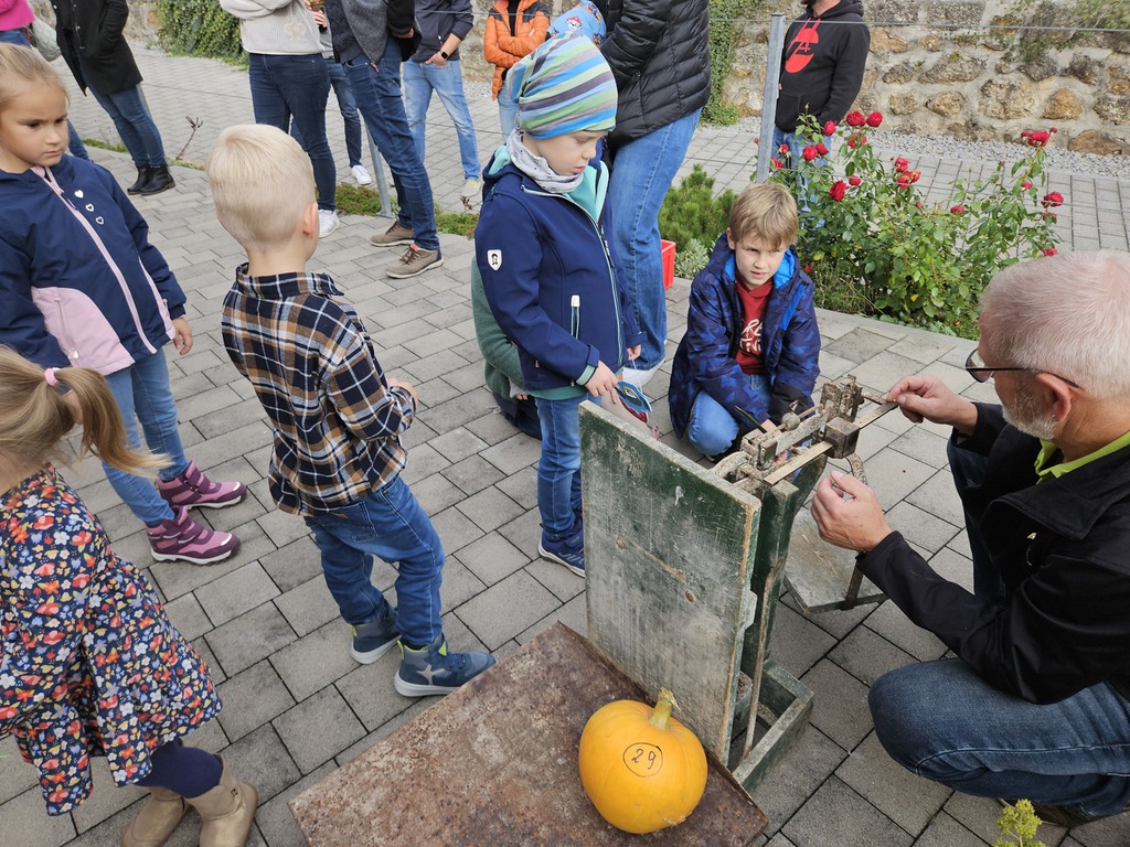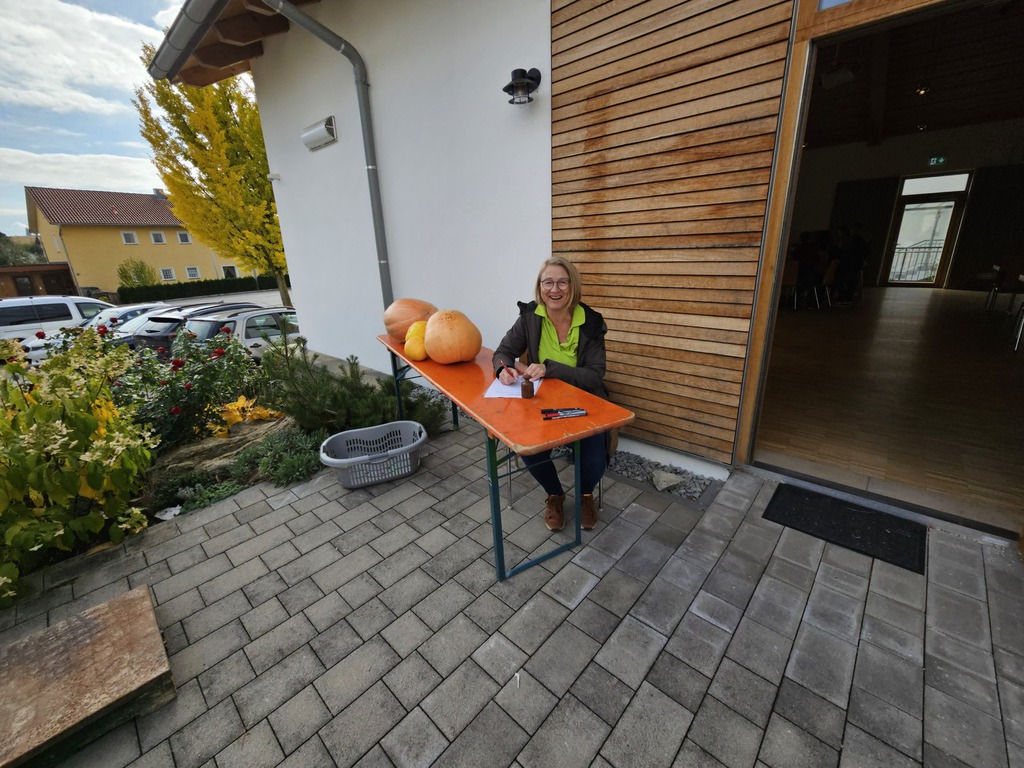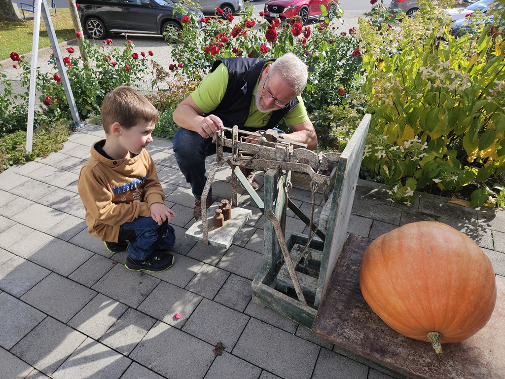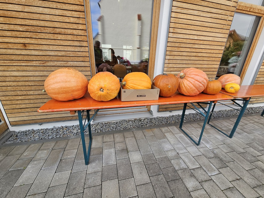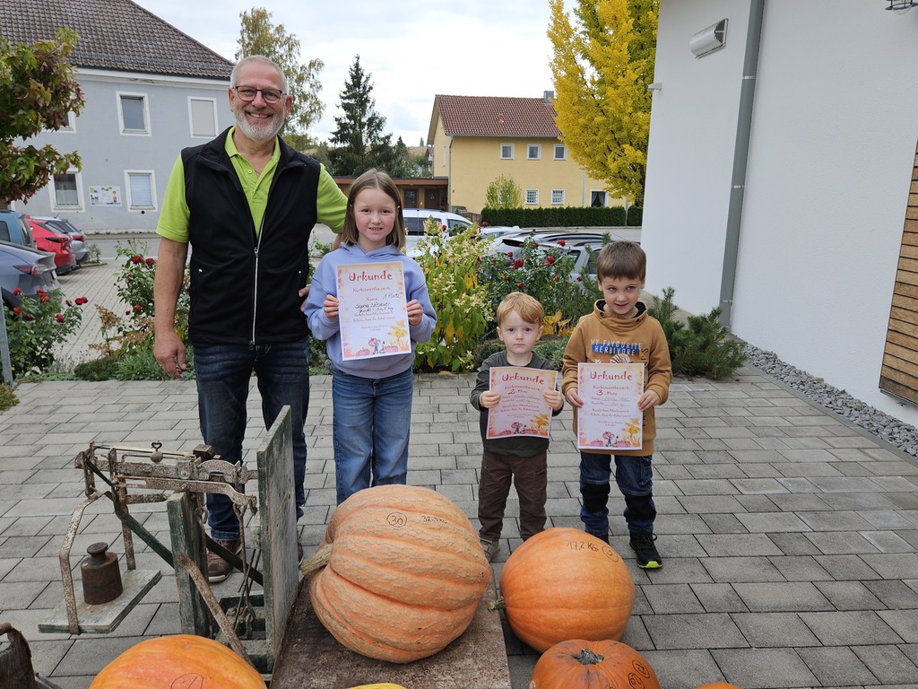 30 kleine Gartler hatten sich im Frühjahr einen Kürbiskern beim Gartenbauverein abgeholt um sich der Aufgabe zu stellen, ein Prachtexemplar heran zu ziehen. Die Unterstützung der Mamas Papas Omas und Opas war natürlich ausdrücklich erlaubt. Ohne die Unterstützung wären sicherlich keine solchen Prachtexemplare entstanden. Beeindruckend war ebenfalls, die Unterschiede in Form und Farbe. Pünktlich um 14:30 begrüßt der erste Vorsitzende Wolfgang Petzi die Nachwuchsgartler mit Anhang und ihren Ergebnissen. Für die korrekte Erfassung bekam jeder angelieferte Kürbis eine Nummer. Manche Kürbisse bekamen zwei oder gar drei Nummern. Leider waren nicht alle Kerne aufgegangen und dann wurde das vorhandene Ergebnis brüderlich und schwesterlich geteilt und gemeinsam weiter betreut. Mithilfe der Nachwuchsgartler wurde Kürbis für Kürbis auf einer alten Dezimalwaage gewogen. Das Wiegen alleine war schon eine Attraktion für die Jugend. Gewichte schätzen um die Waage mit den passenden Gewichten zu bestücken um das abschließende Feineinwiegen durchzuführen, beeindruckte sehr. Im Anschluss führte Wolfgang die Siegerehrung durch. Sophia Nöbauer holte sich den ersten Platz mit einem Gewicht von 32,5KG gefolgt von Nicolas Schwarz 21KG und den dritten Platz sicherte sich Moritz Petzi mit 17,2KG. Alle weiteren Kürbisse wurden mit einer Teilnehmerurkunde gewürdigt. Was wäre eine Prämierung ohne Preise. Petra Weindl hat einen beachtlichen Präsenttisch gestaltet, der keinen Wunsch der Nachwuchsgartler offenließ. Wenngleich es auch mal kleine Krokodilstränen gab, wenn das vorausgesuchte Präsent schon weg war. Ersatz war aber gleich gefunden. Ein weiteres Highlight war der Basteltisch, den die Mamas liebevoll ausgestaltet und unterhalten haben. Für das leibliche Wohl war natürlich auch bestens gesorgt. Passend zum Motto gabs Suppe und andere Leckereien vom Kürbis.