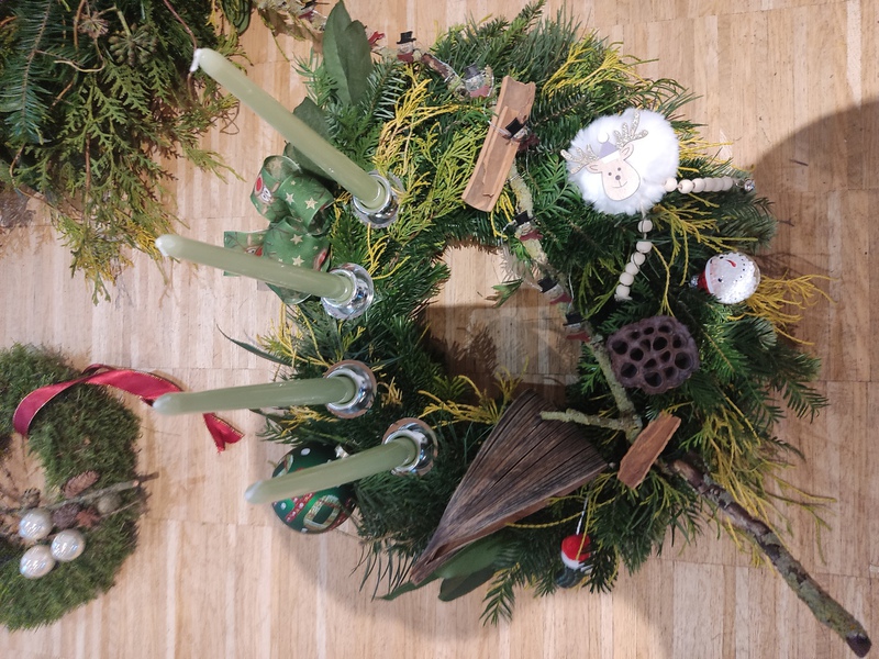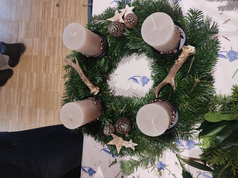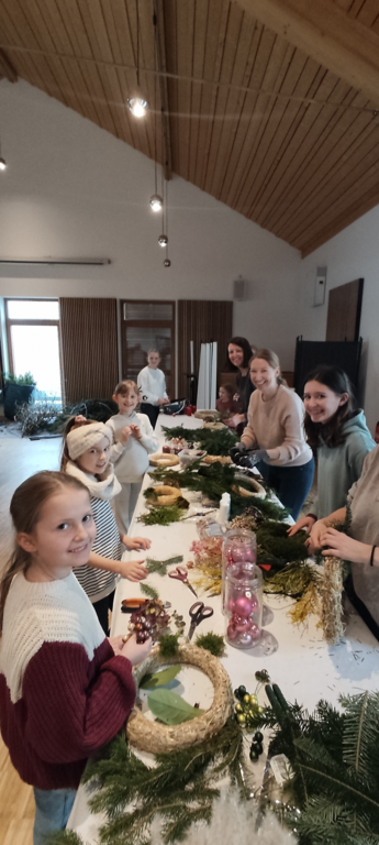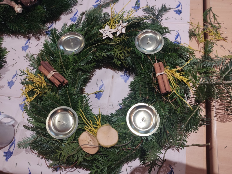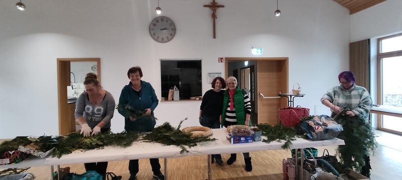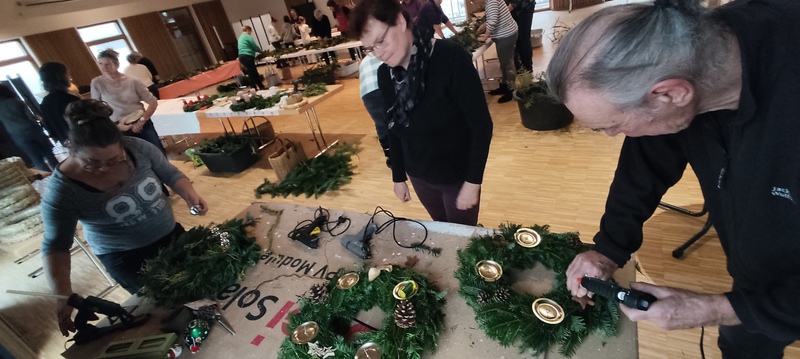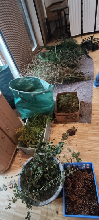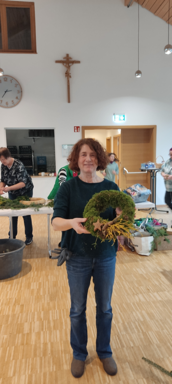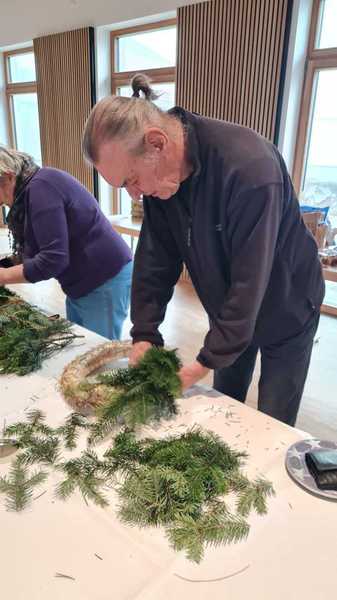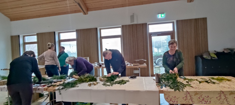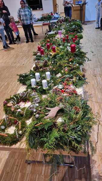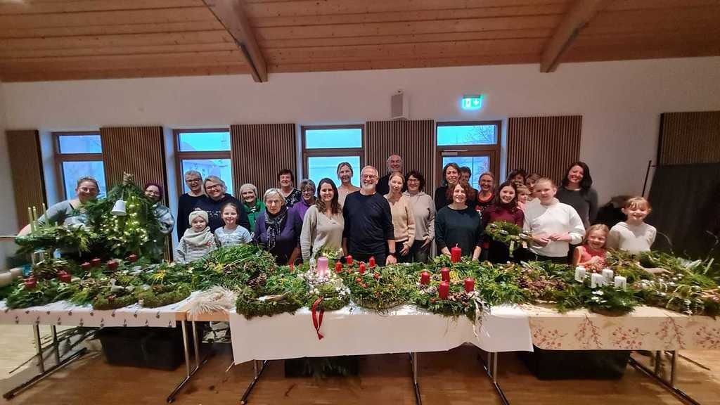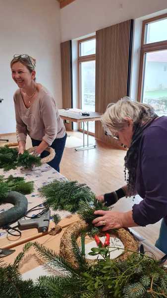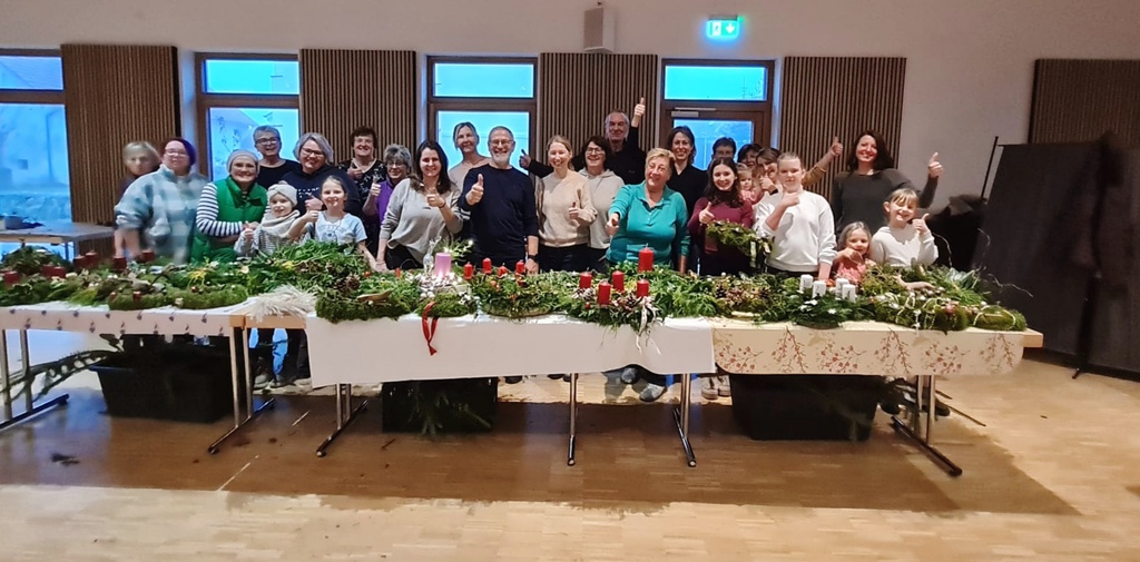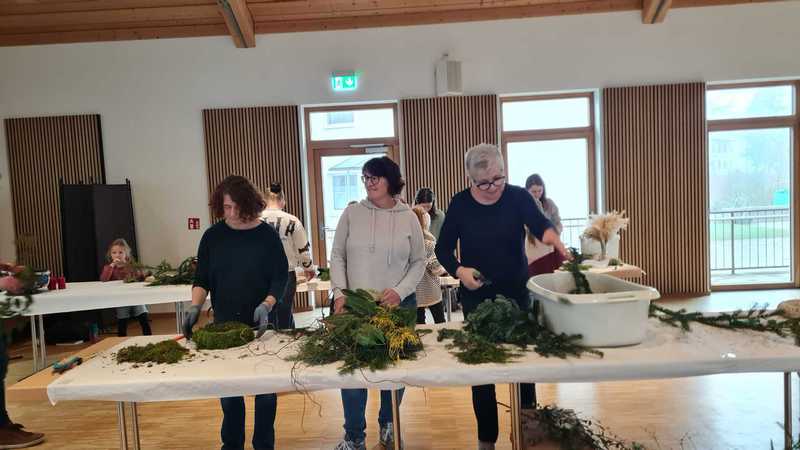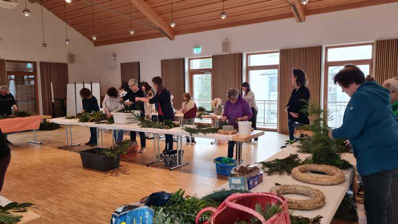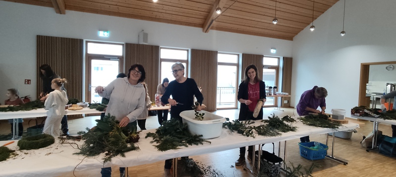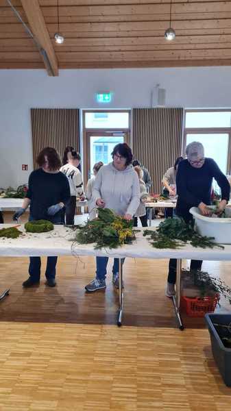 Der GV-Reutern staunte nicht schlecht, als sich 30 Personen vom Gartenzwergal bis zur Gartleroma zum letzten Aktionspunkt der Jahresplanung „ Adventskränze und Türkränze binden“ anmeldeten. In einer Sondersitzung, initiiert von der Organisatorin Lena Wagner, mussten viele Punktebesprochen und abgearbeitet werden. Tannenzweige, Moos, Korkenzieherweidenzweige, Thujazweige, Kirschlorbeer, Tannenzapfen, Dekoartikel,Rohkränze, Bindematerial, Werkzeuge, Dekoartikel, Kerzen, Verköstigung und vieles mehr standen auf der Besorgungsliste, die auf verschiedenTeams verteilt werden mussten. In der Vorbereitungsphase am Veranstaltungstag waren viele fleißige Hände notwendig, um die Waren griffparatim DGH Reutern bereit zu stellen. 1. Vorsitzender Wolfgang Petzi begrüßte die pünktlich erschienen Bastelfreunde und bot Lenas Unterstützungbeim Binden an, wenn es Bedarf gäbe. Natürlich hatten die Teilnehmer die Freiheit, eigenes Bastelmaterial mit zu nehmen um dem heimischenFarbkonzepten gerecht zu werden. Dann begann das rege Binden der Kränze. Es wurde heftig geratscht, gelacht, gebunden, geklebt, getackertund wenn die Kraft nachließ, gings es an die Naschecke mit Glühwein, Kinderpunsch für alle. Für die jüngsten gab es liebevoll verzierte Muffins,welche die Erwachsenen zu den Kuchenschnitten auch nicht verachteten. Am meisten überraschte die junge Generation, die es sich nicht nehmenließ, unter den Augen der Mamas in Eigenregie die Objekte zu gestalten und fest zu werkeln. Viele schöne Exemplare sind in Handarbeit, mitgegenseitiger Unterstützung aller entstanden. Zum 1. Vorsitzenden Wolfgang Petzi hat sich noch ein weiteres männliches Geschöpf, demgrundsätzlich femininen Bastlern, hinzugesellt und voller Stolz seinen ersten Kranz gebunden. Ein überaus gelungener Basteltag zurWeihnachtszeit ließ in vielen freudigen Gesichtern schöne Erinnerungen entstehen.