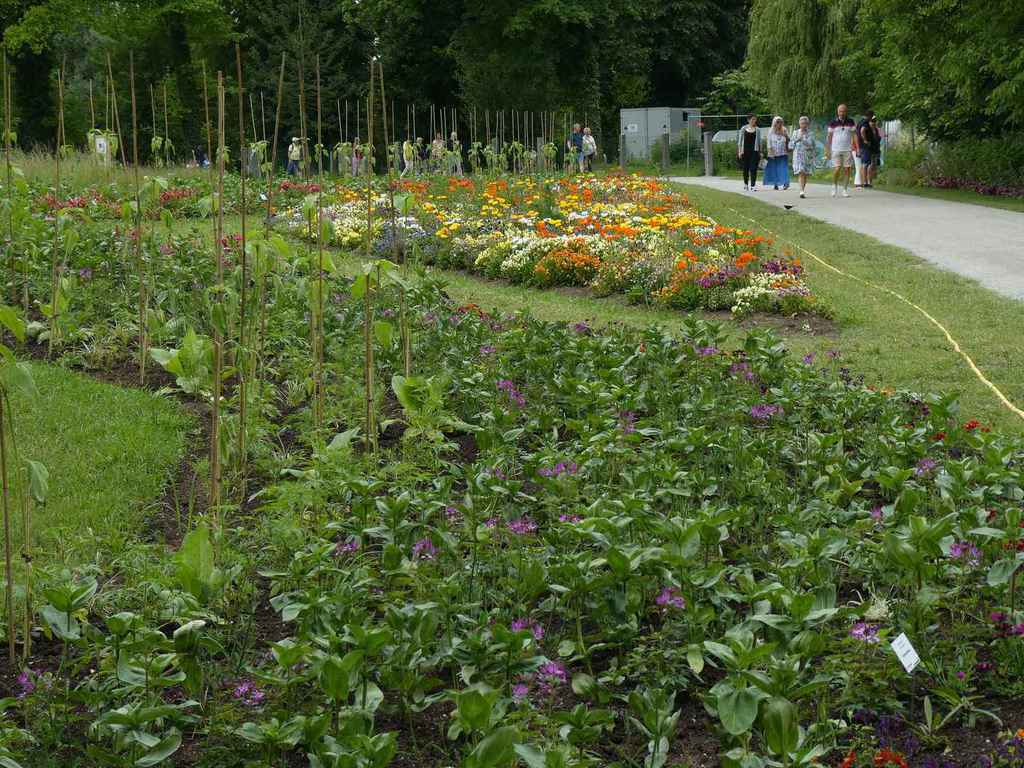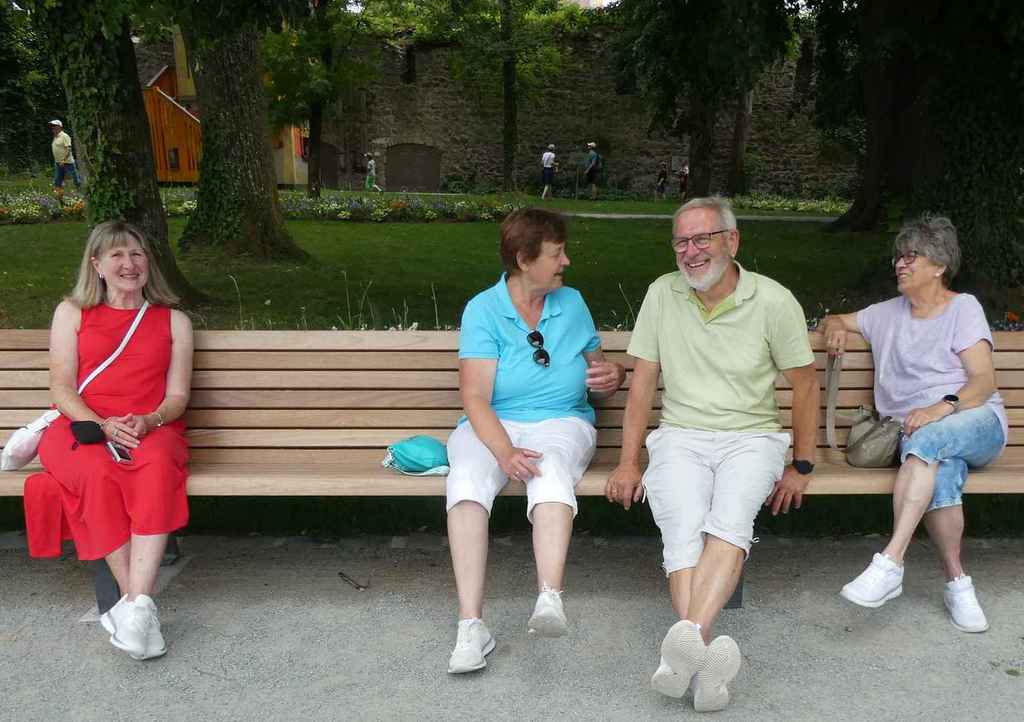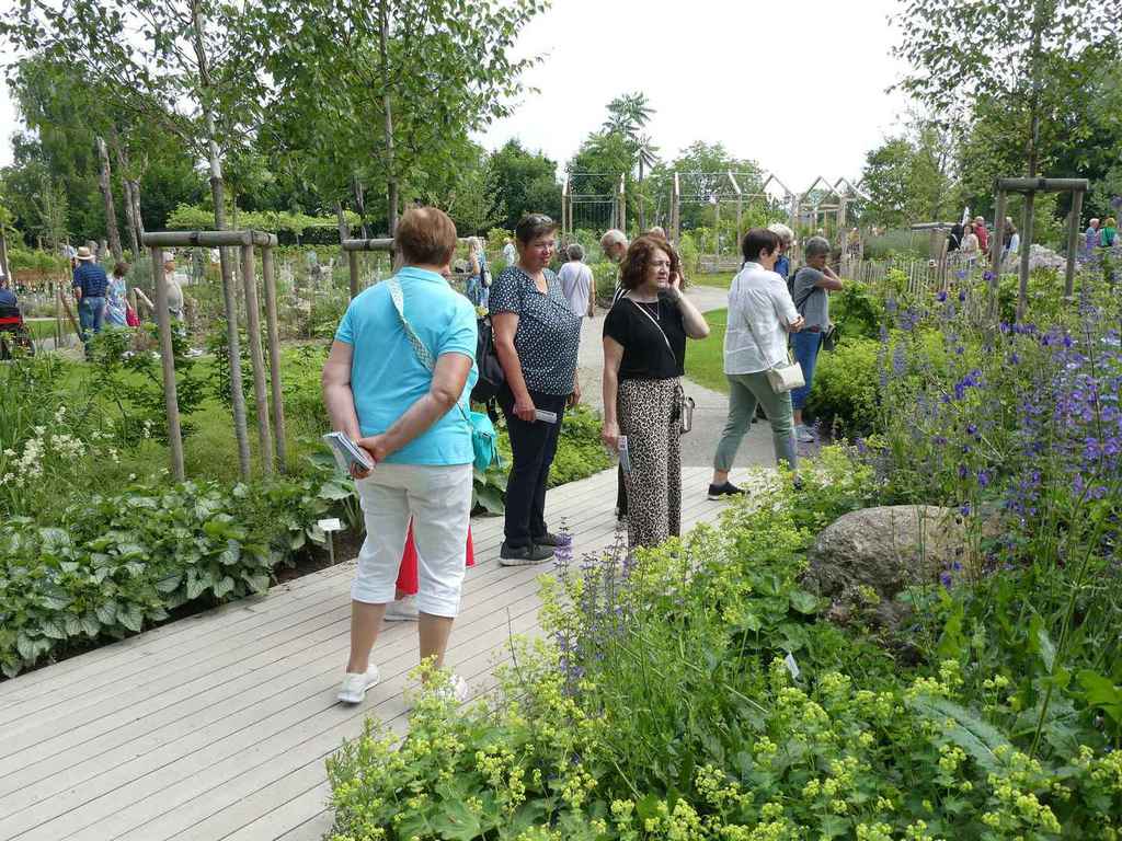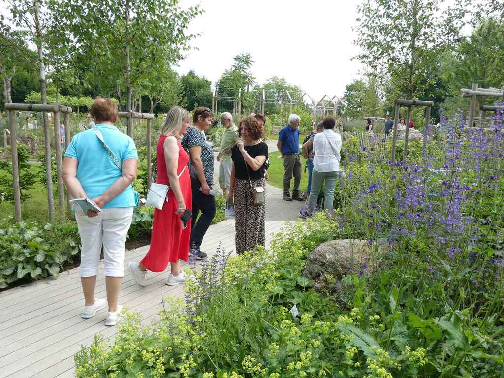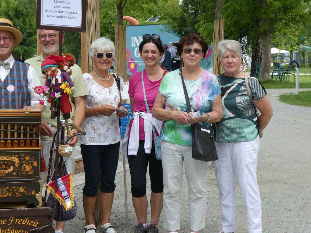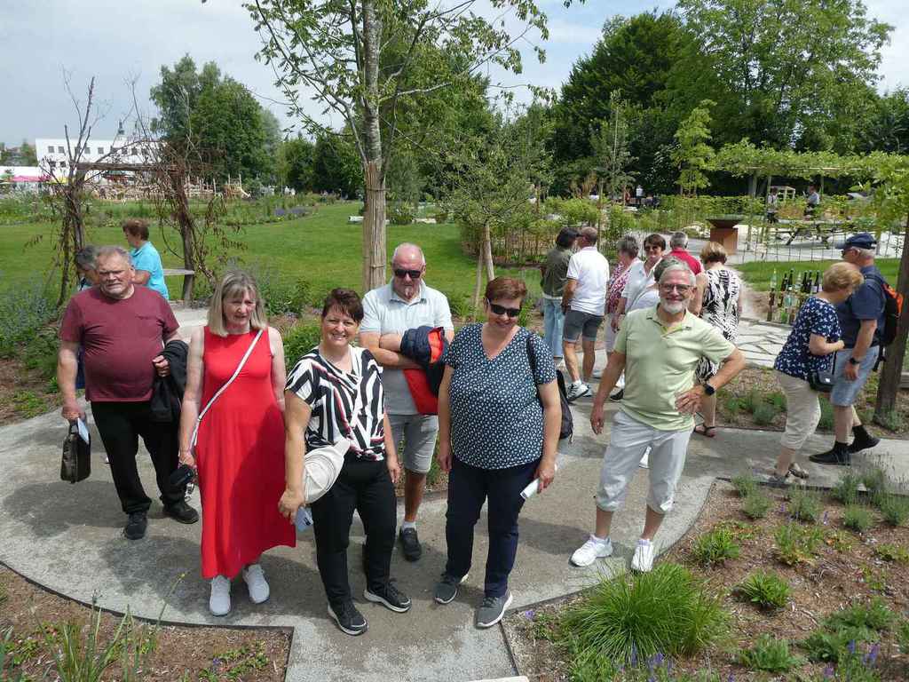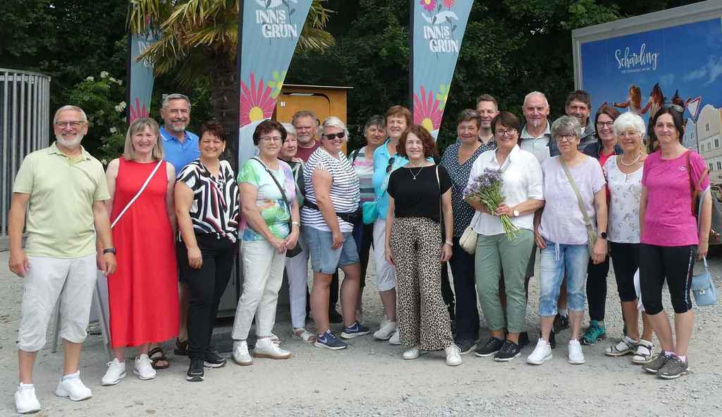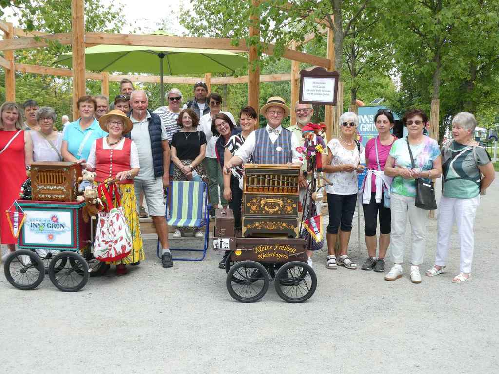 Alle interessierten trafen sich am Treffpunkt in Reutern, um mit Fahrgemeinschaften den Zentralparklatz in Schärding anzusteuern. Eine Gruppe E-Biker ließ es sich nicht nehmen, via Rad anzureisen. Das Wetter konnte für die Besichtigung nicht besser passen. Viele Schattenplätze bietet die Landesgartenschau nicht an. Da brauchen die Gärten noch ein paar Jahre für die Pflanzungen um den Planvorstellungen der Gestalter das geplante Ergebnis zu offerieren. Der zweisinnige Slogan „Inns Grün“ lockte 20 Gartler, um einen schönen Tag in Schärding zu verbringen. Die erste Überraschung ist dem Mitgliederpaar Fam Bernkopf aus Winkl gelungen. Begrüßten Sie ihre Gartler-Kameraden mit einer schönen Drehorgeleinlage im Stil der Leierkastenzeit (mitte 18JH) am Eingang der Landesgartenschau. Wunderschön gestaltete Gärten entlang des Inns ließen die Besucher staunen. Die mit Stein, Holz und vielen andern Materialien gestalteten diverser Gartenanlagen Liesen die Gedanken über die eigene Gartengestaltung schweifen. Die Bienenkönigin eines Bienenvolkes, die eigens mit einer Glasscheibe den Einblick ins Volk gewährte, konnte niemand ausmachen. Dem emsigen Treiben konnte man staunend folgen. Der Weg führte weiter zum Garten der Orangerie mit Kurpark über den Stadtplatz zum Schlosspark. Über die Terrassen der Innlände, die mit sehr schön gestalteten Wechselflorbeeten zum Verweilen an sonnigen Sitzplätzen einlud; ging es ins Grüntal weiter. Im Grüntal erwarteten die farbenfroh gestalteten Themengärten die leicht erschöpften Gartler. Im Siedlergarten erfrischten sich die Mitglieder um mit den schönen Erinnerungen der OÖ Landesgartenschau auf Wiedersehen zu sagen.