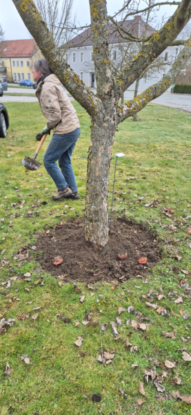 Zusätzlich wurden die Baumscheiben mit frischem Rindenmulch versehen.