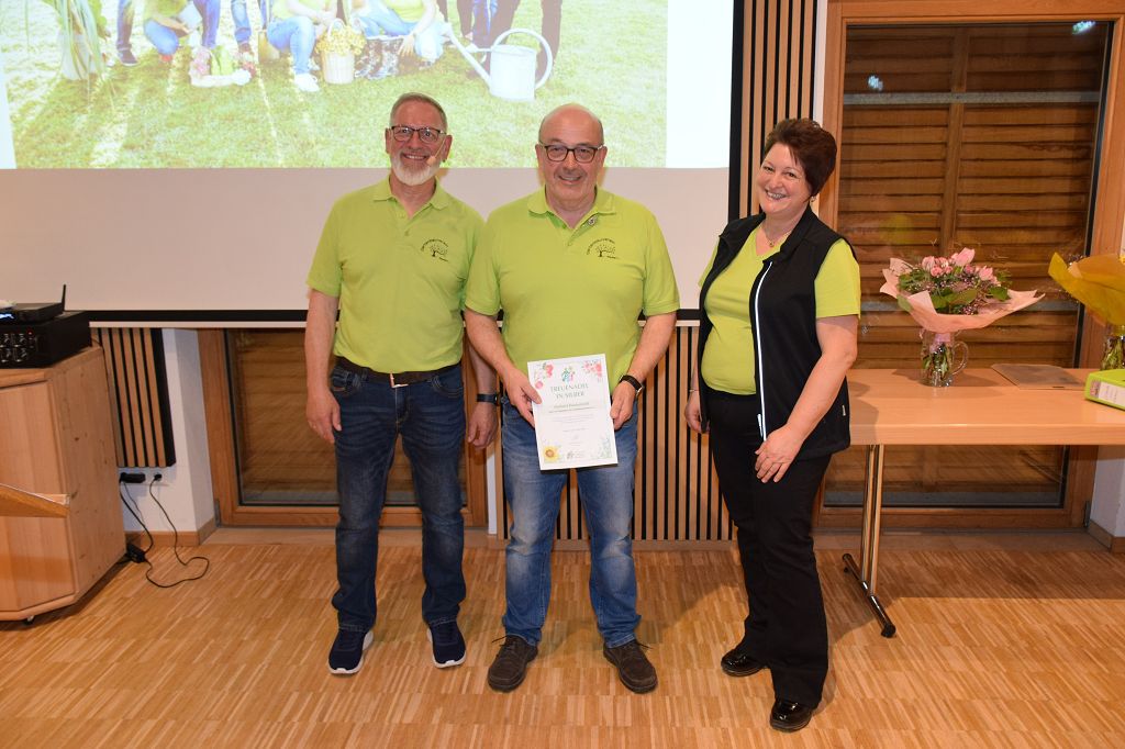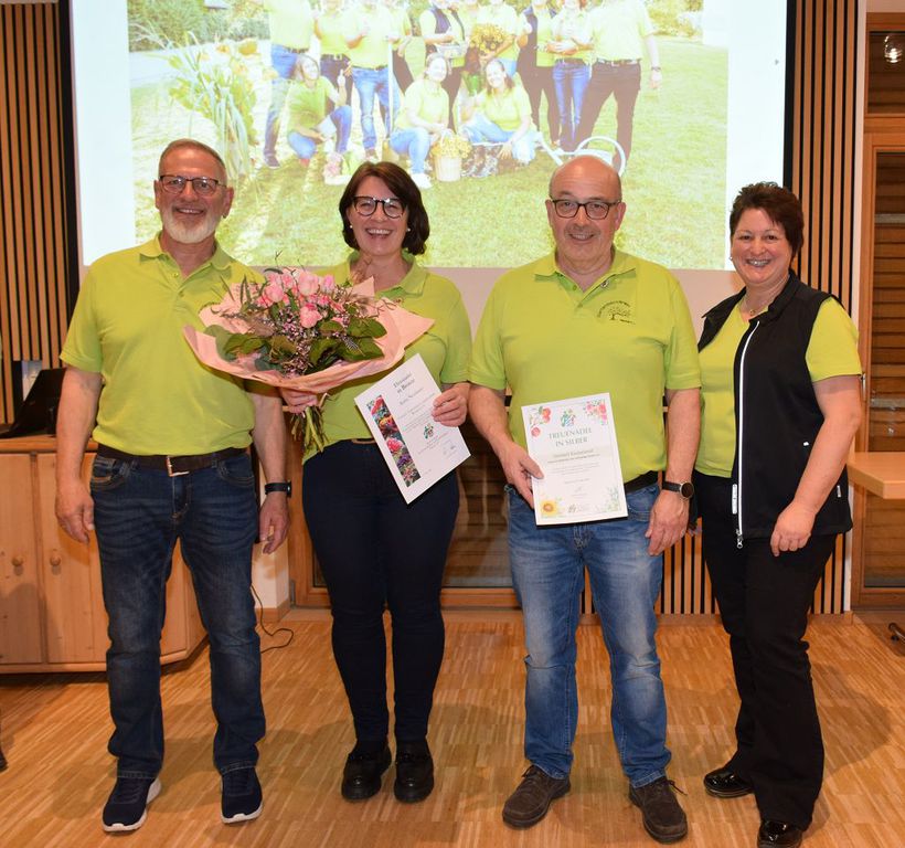 Der Gartenbauverein verzeichnet einen enormen Mitgliederzuwachs in 2025 und freut sich über die höchste Beteiligung an der Jahreshauptversammlung. Da waren die beiden Vorsitzenden Wolfgang Petzi und Martina Stirner sichtlich überrascht über die tolle Resonanz. 18 neue Mitglieder begrüßte Wolfgang in der Versammlung und lies alle, zu einer kleinen Gedenkminute der verstorbenen Mitglieder, innehalten. Frisch gestärkt und bestens versorgt berichtet der 1. Vorsitzende Wolfgang über die Aktivitäten in 2025. Die Aktivitäten im einzelnen waren der Baumschneidekurs im Pfarrgarten mit Referent Hans Schwarzbauer, die Jahreshauptversammlung mit Neuwahlen und der Verabschiedung von Marianne Geist. Die Rama Dama Aktion der Gartenzwergal mit Jungfeuerwehr, die sehr gut besuchte Pflanzentauschbörse, den Töpferkurs, die Installation von Hochbeeten der neu gegründeten Knollenbande, der Besuch der Landesgartenschau in Schärding, zu dem die Familie Bernkopf mit den Drehorgeln die Gartlerkollegen(innen) am Eingang begrüßte, die Sonnwendfeuer am DGH, die Naturgartenzertifizierung bei Ilona und Alfred Rhode, die Waldwanderung im Griesbacher Staatsforst, den Conökobesuch bei der Confidostiftung, die Kürbisprämierung und der Erntedank als Abschluss. Besonders erwähnt Wolfgang die Nominierung zur Baumpflanzchallenge. Die Umsetzung der Challenge erfolgte gemeinsam mit der Knollenbande, die unter dem Motto „Hey Zwerge, hey Zwerge,hey Zwerge ho Hey Zwerge, hey Zwerge, go go go“ vol motiviert den Baum fast im Alleingang pflanzten. Das entstandene Video, das Carina Neubauer generierte, war der Hammer. Die Homepage ist immer aktuell und wird sehr gut besucht. 6 Mitgliedern gratulierte man zum 70ger, 75ger, 80 und 85 zigsten Geburtstag. Der weitere Blick richtete sich dann in die Zukunft mit den geplanten Aktionen wie der Besuch der Ruhstorfer Gruppe, Sonnwendfeuer, ein Tagesausflug nach Linz, ein Vortrag einer Ornitologin, Advendsmarkt sowie die anstehenden 18 Geburtagsgratulationen. Diana Winklhofer (Leitung Gartenzwergal) und Manuela Petzi (Leitung Knollenbande) referierten über vielen Aktivitäten in 2025. Ein echter Mehrwert für den GV Reutern, wie man feststellte. Alleine in der Zwergalgruppe befinden sich 6 Mütter mit 12 Kindern. Da ist was los, wenn die Mädels und Jung aktiv sind. Mit der Knollenbande sind es derzeit 39 Kinder, die in den beiden Gruppen betreut werden. Der nächste highlight wird sicherlich der Besuch eines Reitstalles sein, bei dem die Fohlen betrachtet werden können. Ohne Mithilfe der Mamas wäre das alles nicht zu schaffen meinten Diana und Manuela und bedankten sich bei den Müttern der Kinder für die tolle Unterstützung. Kassiererin Anita Neubauer legt die Daten der Kassenführung offen und kann nur erfreuliches zum Jahresabschluss berichten. Die Kassenprüfer Rosa Danner und Arnold Pöschl konnte eine Ordnungsgemäße Kasse bestätigen. Rosa schlug der Versammlung die Entlastung vor welche 1-stimmig bekundet wurde. Wolfgang und Martina konnten zwei verdiente Mitglieder ehren. Anita Neubauer für 10 Jahre Vorstandsarbeit erhielt die Ehrennadel in Bronze mit Urkunde und Herbert Köckerandl bekam die Ehrennadel in Silber und Urkunde für 25 Jahre Mitgliedschaft. Evi und Franz Schwarz danke Wolfgang mit einem Blumenstrauß für den langjährigen vereinsinternen Artikelverkauf, den sie ehrenamtlich von 1997 bis 2025 bewirtschafteten. Als Abschluss hielt Otto Bichlmeier, geprüfter Gartenpfleger seit 2023, einen Fachvortrag über „ Der Obstbaum – Was sie wissen sollten“ Dabei ging es um die Nährstoff und Mineralversorgung der Obstbäume, der passenden Wasserversorgung mit Erkennung der Mangelerscheinungen am Blatt und an den Früchten und vieles mehr rund um die Obstsorten im Garten. Abschließen bedanke sich der 1. Vorsitzende Wolfgang bei seinem Mannschaftsteam, das sich vor der Versammlung präsentieren durfte, mit rührigen Worten. Die Versammlung danke es mit einem tollen Applaus.