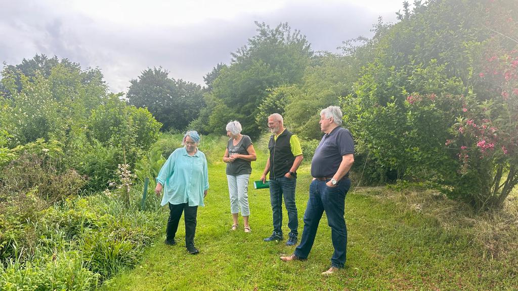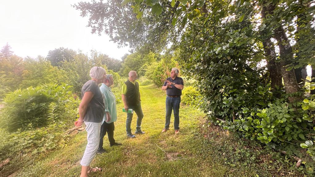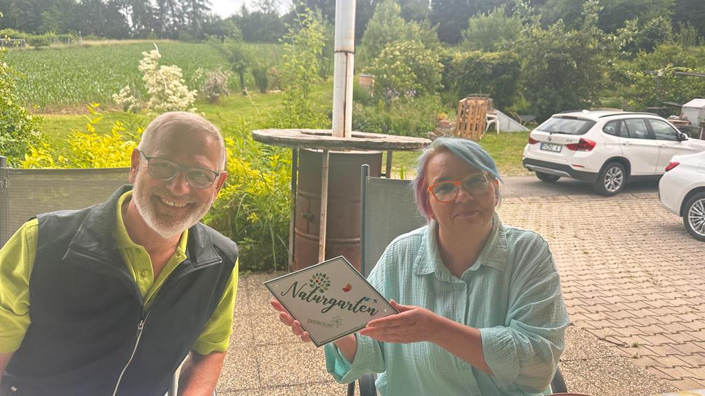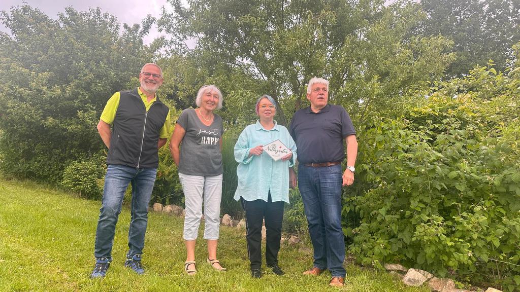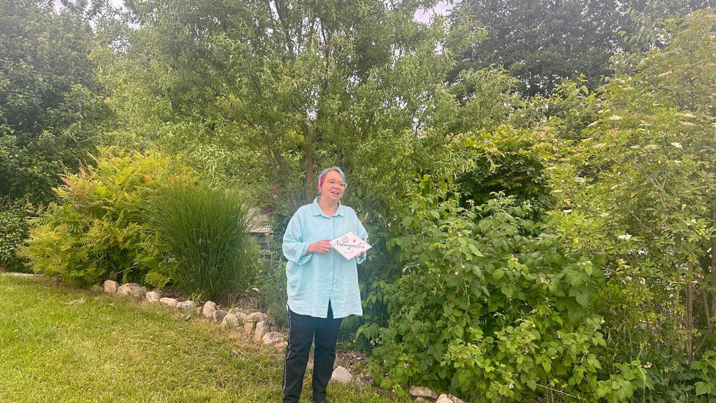 Im Winter 2024 habe ich Wolfgang Petzi in meinen Garten eingeladen, wir sind die Kriterien der Naturgartenzertifizierung durchgegangen und waren der Meinung, das könnte funktionieren. Also haben wir uns angemeldet und das Prüfungskomitee vom Kreisverband Passau ( 1. Vorsitzender Josef Hirschenauer und Gaby Stark ) kam im Juni 2025 zur Besichtigung. Wolfgang als Vertreter des GBV- Reutern war auch dabei und hat uns unterstützt – vielen Dank dafür ;)!