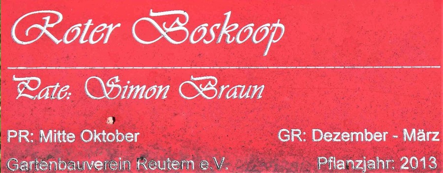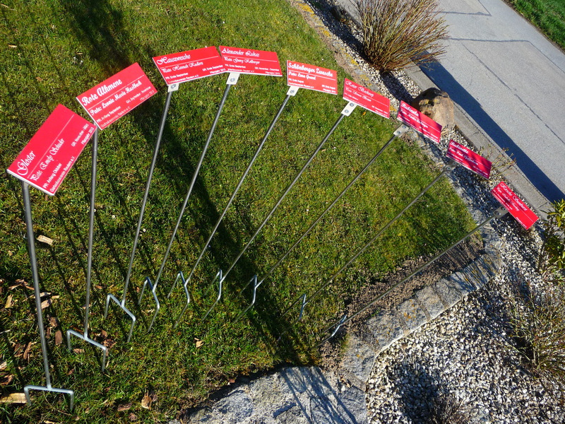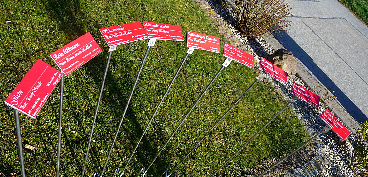 Pöschl Arnold fertigte neue Patenschilder aus Edelstahl für den Obstgarten in Reutern.