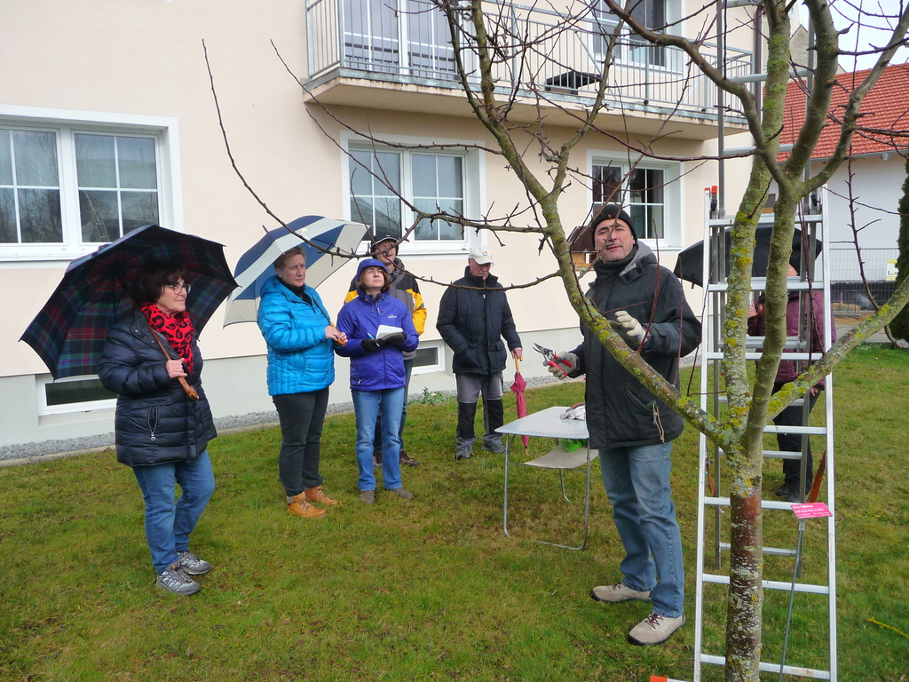 Der GbV-Reutern startete die Gartlersaison mit einem Schneidekurs der Patenbäume im Pfarrgarten.