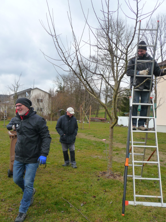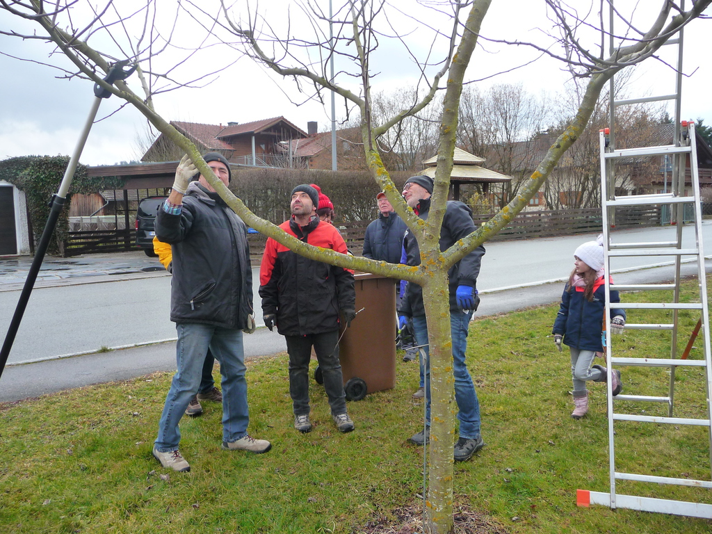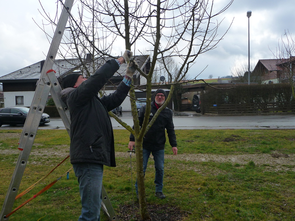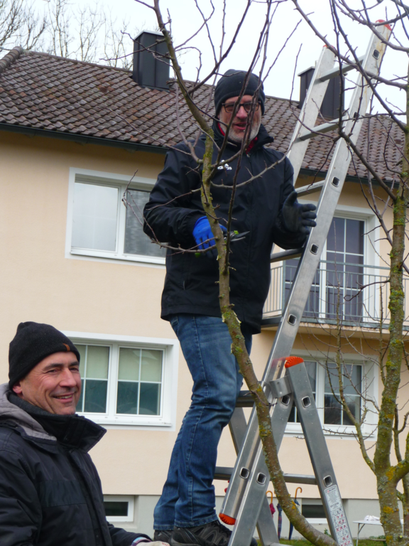 Nach einer gründlichen Reinigung/ Desinfektion der Schneidewerkzeuge wurden die verschiedenen Obstbäume im Pfarrgarten mit einem Ertragsschnitt wieder in Form gebracht. Bei einer Tasse Kaffee und einem selbsgebackenen Kuchen traf man sich im DGH noch auf einen gemütlichen Ratsch.