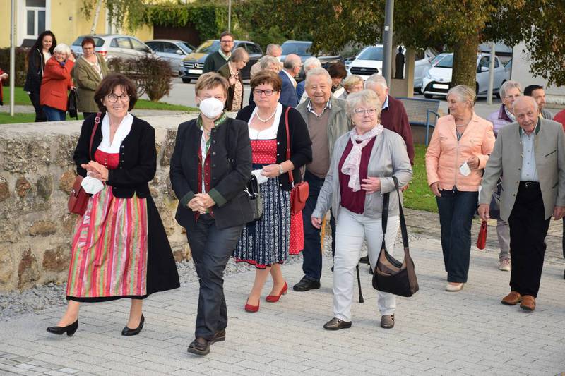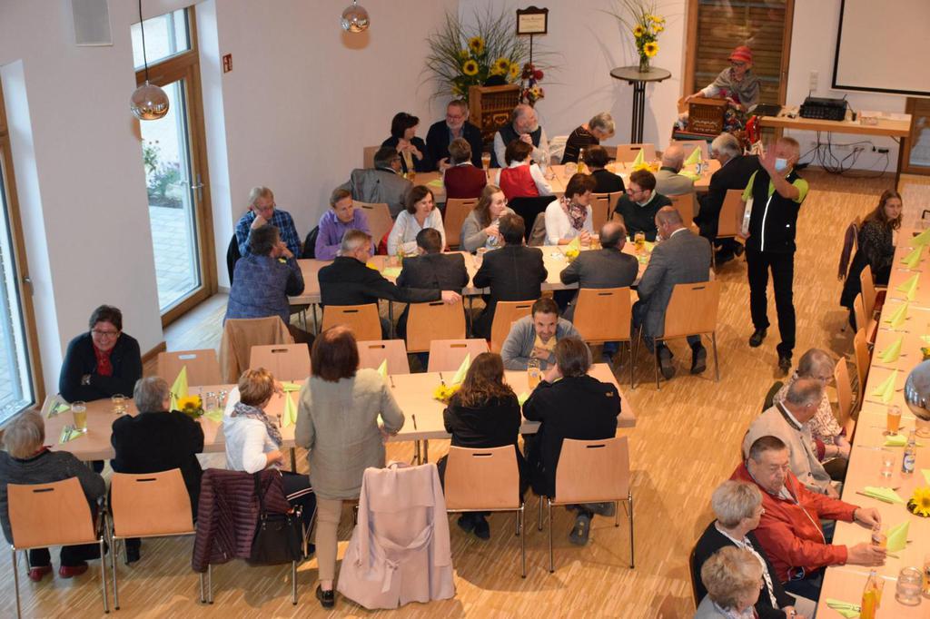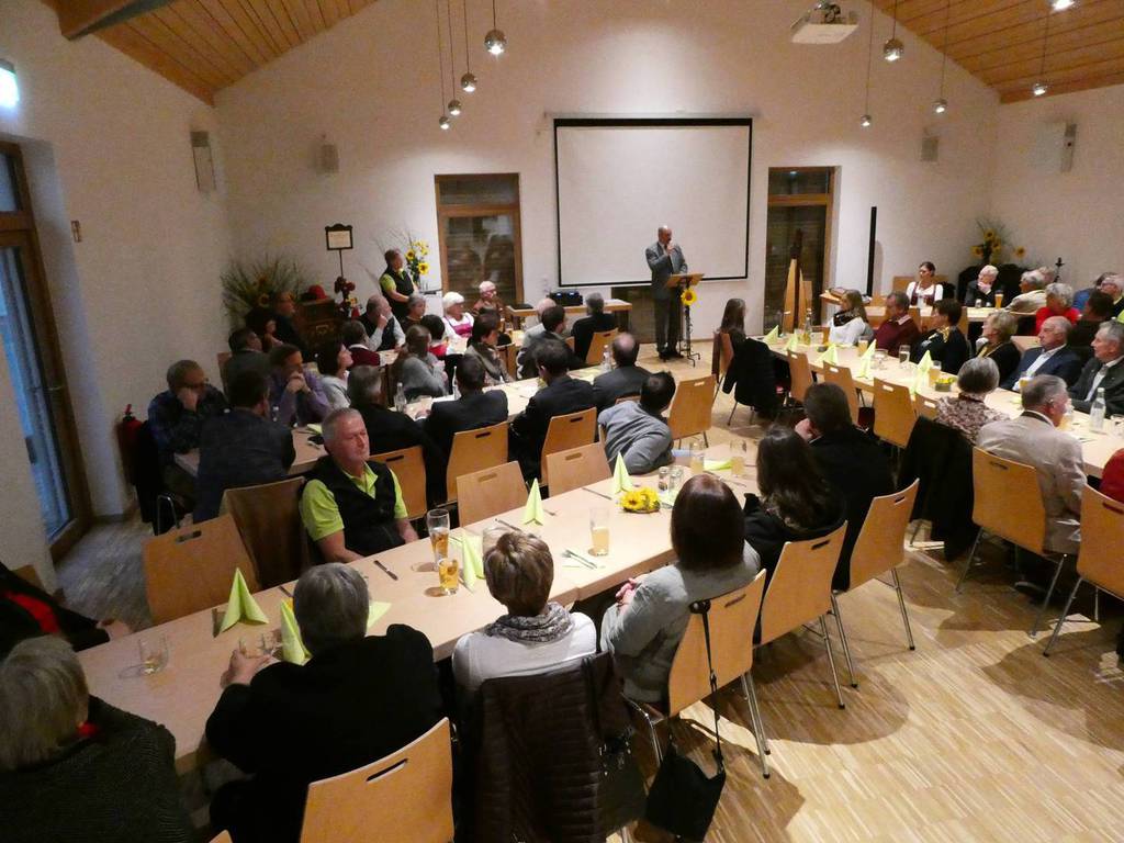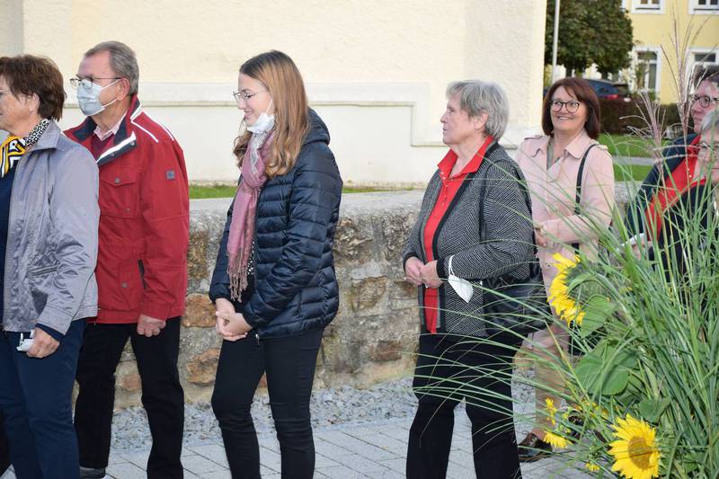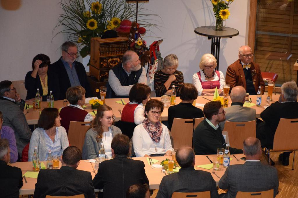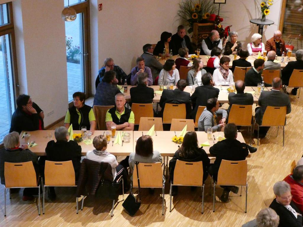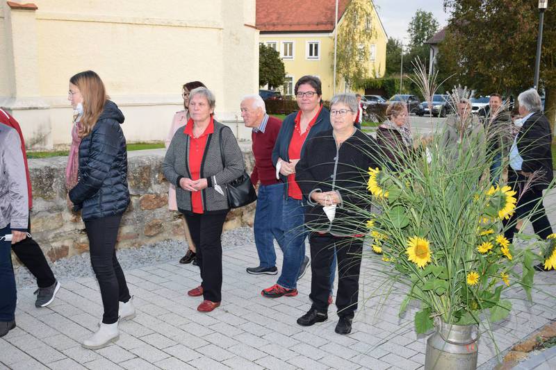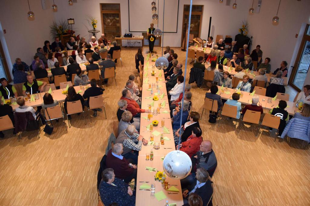 Zum Gedenken an die verstorbenen Mitglieder der letzten 15 Jahre, die namentlich von der 1. Vorsitzenden Marianne Geist verlesen wurden, zündete der 2. Vorsitzende Wolfgang Petzi ein Licht als Zeichen des nicht Vergessens an. Bei strahlendem Sonnenschein geleitet das Ehrenmitglied Rupert Bernkopf nebst Gattin Inge die Festgesellschaft mit Drehorgelmusik ins herbstlich dekorierte Dorfgemeinschaftshaus. Marianne Geist begrüßte unter den zahlreichen Gästen besonders Pfarrer Roland Burger, Dekan Georg Hifinger, 3. Bürgermeister Bernhard Gruber, Kreisverbandsvorsitzenden Josef Hirschenauer, die Stadträte Hans Lindner, Hans Kriegl und Monika Anschütz, Ehrenmitglied Rupert Bernkopf, die Abordnungen der örtlichen Vereine und den Moderator Walter Karlstetter. Eine besondere Freude bereitete der benachbarte Gartenbauverein Schmidham unter der Leitung von Rosa Liebl mit einem Gastgeschenk; ein Apfelbaum, welcher der Baum des Jahres von 1996 (Gründungsjahr) war.