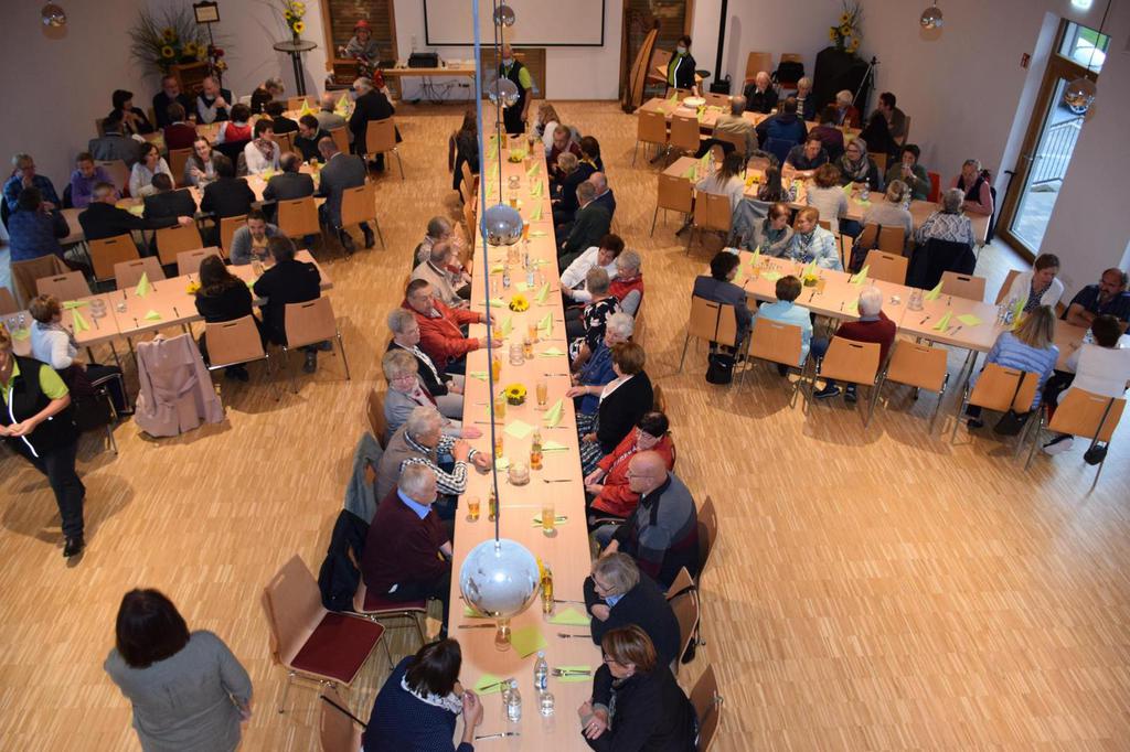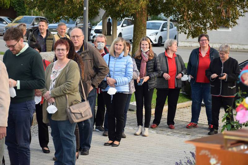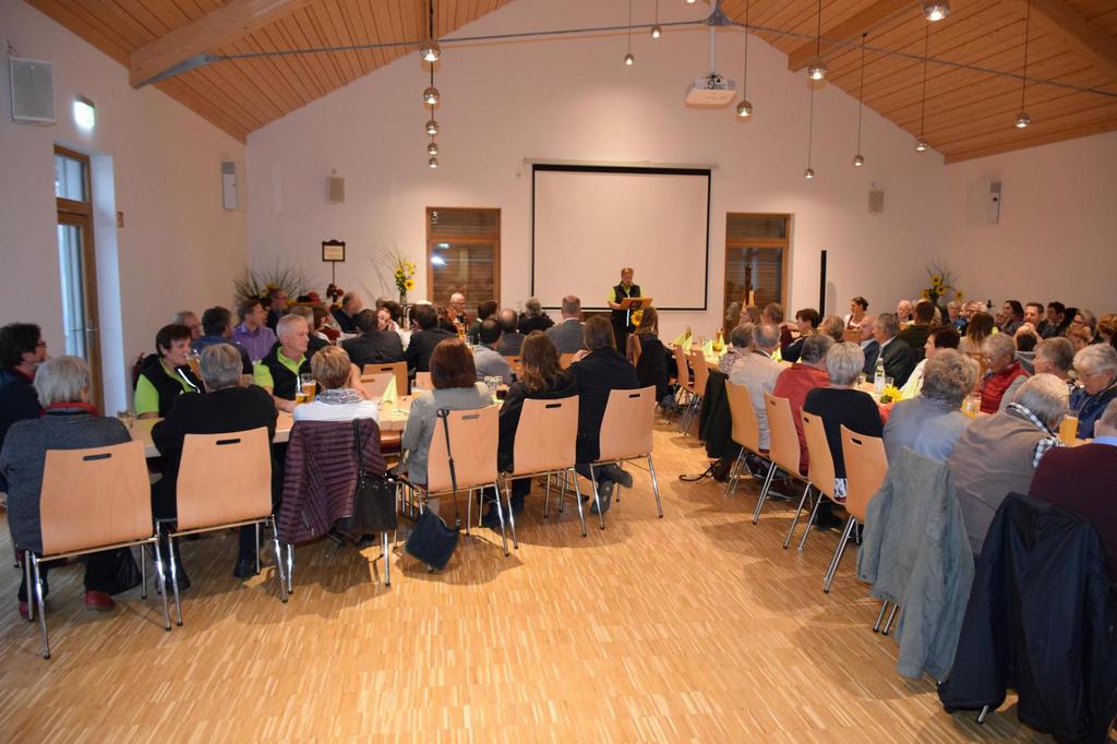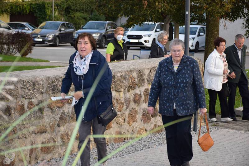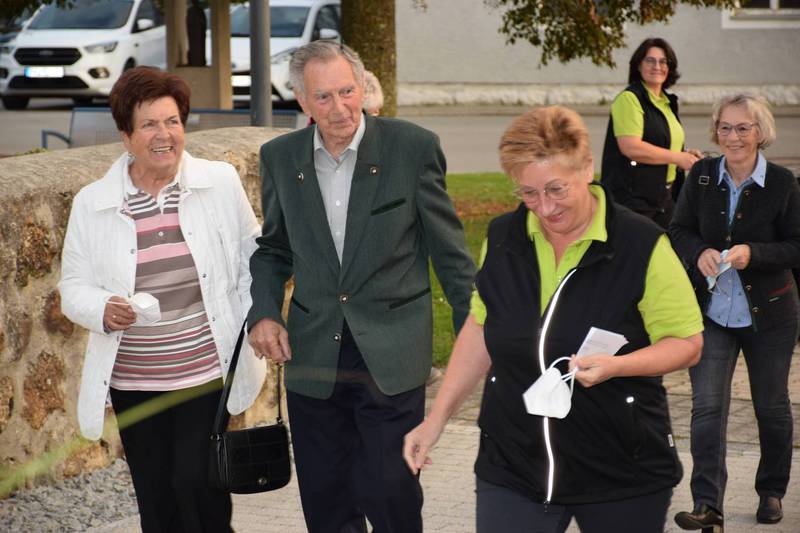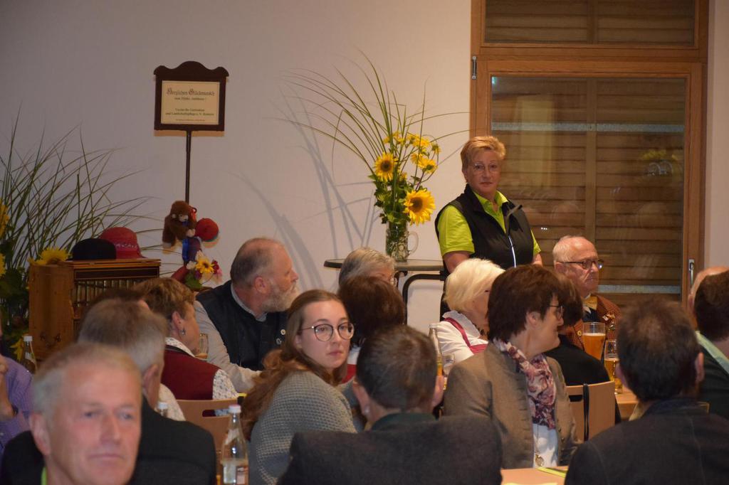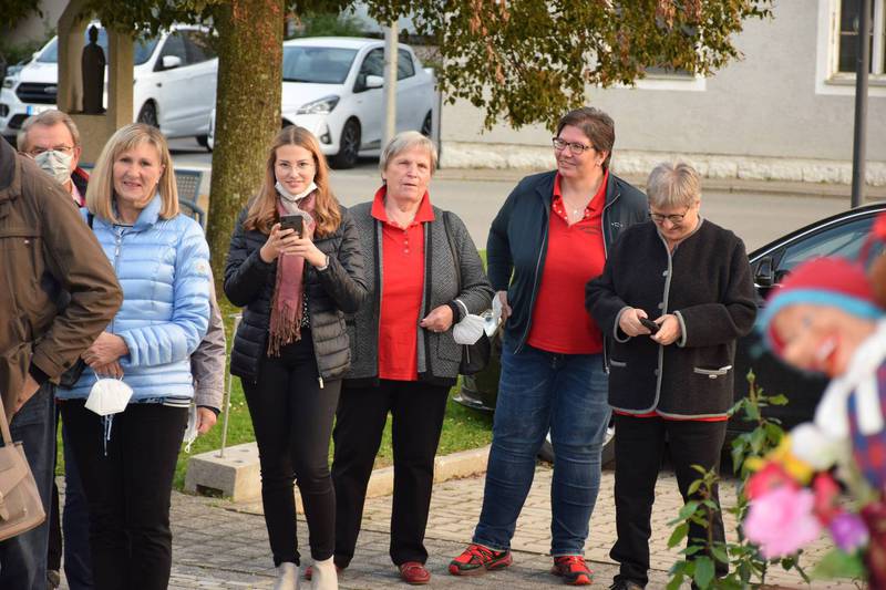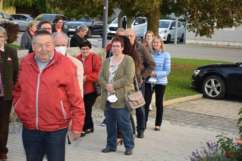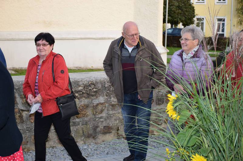 Zum Gedenken an die verstorbenen Mitglieder der letzten 15 Jahre, die namentlich von der 1. Vorsitzenden Marianne Geist verlesen wurden, zündete der 2. Vorsitzende Wolfgang Petzi ein Licht als Zeichen des nicht Vergessens an. Bei strahlendem Sonnenschein geleitet das Ehrenmitglied Rupert Bernkopf nebst Gattin Inge die Festgesellschaft mit Drehorgelmusik ins herbstlich dekorierte Dorfgemeinschaftshaus. Marianne Geist begrüßte unter den zahlreichen Gästen besonders Pfarrer Roland Burger, Dekan Georg Hifinger, 3. Bürgermeister Bernhard Gruber, Kreisverbandsvorsitzenden Josef Hirschenauer, die Stadträte Hans Lindner, Hans Kriegl und Monika Anschütz, Ehrenmitglied Rupert Bernkopf, die Abordnungen der örtlichen Vereine und den Moderator Walter Karlstetter. Eine besondere Freude bereitete der benachbarte Gartenbauverein Schmidham unter der Leitung von Rosa Liebl mit einem Gastgeschenk; ein Apfelbaum, welcher der Baum des Jahres von 1996 (Gründungsjahr) war.