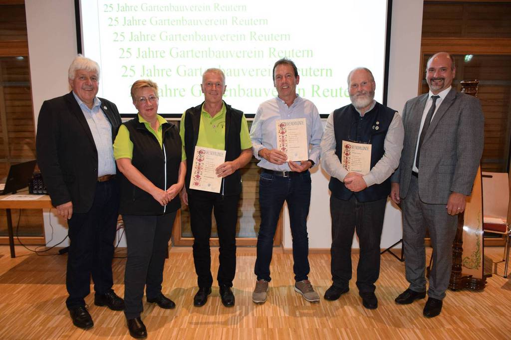 Marianne Geist blickte zurück auf die Gründung und die Entwicklung des Vereins über die 25 Jahre. Gründungsvereinsvorsitzender Alois Gimpl startet damals mit seinem Team mit ersten Vorträgen und Ausflügen. Seine Nachfolge trat Helmut Bader, welcher den Verein über 12 Jahre weiter nach vorne führte an. Marianne Geist übernahm dann 2012 als 1. Vorsitzende mit Traudl Märzendorfer als 2. Vorsitzende, Kassiererin Anita Neubauer, Schriftführer Hans Schwarzbauer und den Beisitzern die Führung des Vereins. Heute zählt der Verein erfreuliche 155 Mitglieder, welcher modern und zeitgemäß aufgestellt ist. Sehr viele Mitglieder sind über Mail und Messenger Dienste angebunden und über die Vereinseigene Homepage immer gut informiert. Sehr erfreulich findet die erste Vorsitzende, dass sich eine Gartenzwergerlgruppe formiert, die in den nächsten Wochen als Untergruppe im Verein verankert wird. Im Namen der Stadt Bad Griesbach gratulierte der 3. Bürgermeister Bernhard Gruber zum 25-jährigen Vereinsbestehen. Worte des Dankes gingen an die Urheber des Vereins und die Gründungsmitglieder. Die Kommune kann vieles machen aber Zusammenhalt, wie das in Reutern gepflegt wird, kann nur von selbst wachsen, unterstrich Gruber. Die Grußworte des Verbandes überbrachte Kreisverbandsvorsitzender Josef Hirschenauer und freute sich mit dem Jubelverein über die erfreulich positive Entwicklung des Vereines.