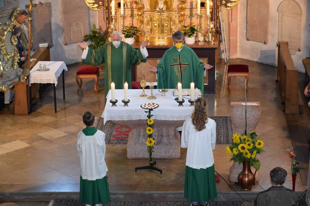 Der anschließende, festliche Gottesdienst, den Pfarrer Roland Burger zelebrierte, startete die Feierlichkeiten. Unterstützt wurde der Herr Pfarrer vom Dekan Georg Hifinger und vom Kirchenchor Reutern unter der Leitung von Irene Högl.