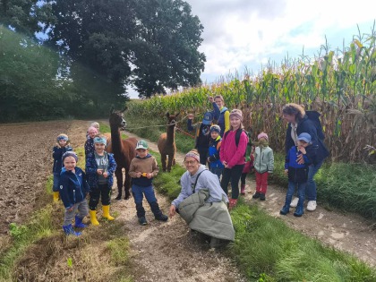 Am Freitag, den 27. September, erlebten 13 Kinder einen ganz besonderen Tag: Eine Alpakawanderung bei Veronik Ehgartner! Nach einer kurzen Einführung durften die Kinder die freundlichen Tiere füttern und erfuhren Spannendes über deren Wolle und Gewohnheiten. Bei herrlichem Herbstwetter ging es anschließend mit drei Alpakas gemütlich durch die Landschaft, mit viel Lachen, Staunen und flauschigen Momenten. Zum Abschluss bekam jedes Kind ein kleines Tütchen Alpakawolle als Andenken.